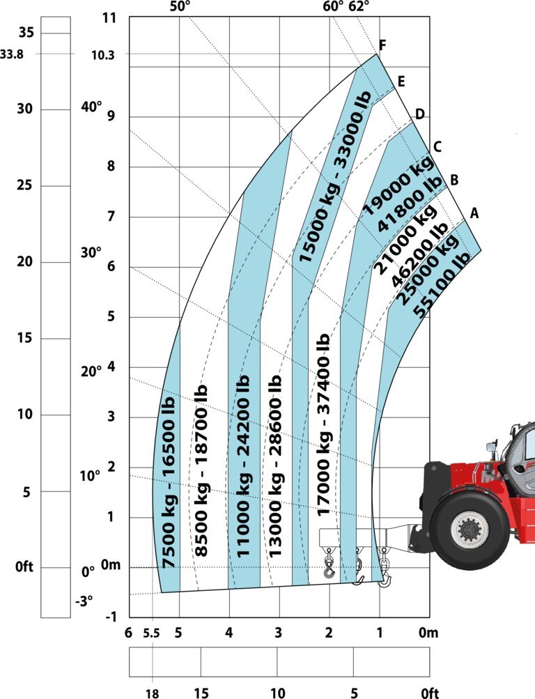 The MHT 11250 Mining stage 5 Telehandler has been specially designed in our production facilities for use in mining applications. This telehandler adds versatility with accessories such as tire and cylinder clamps, jib, forks and basket, it is built for the safety of the operator as well as their environment. With a lifting capacity of 55,000 lbs. (25 t), its boom can reach up to 34'10" (10.60 m): it is the ideal solution for all types of maintenance and/or service work. The turning radius of the MHT 11250 is 18 feet (5.50 m) and its high ground clearance of 19 inches (47 cm) allow this telescopic handler to maneuver easily in mines. It comes factory equipped with dedicated mining equipment that facilitates the work of operators for all types of applications inside the mine. Reinforced braking system (SAHR type) Daily brake test system Emergency steering Protection grids External emergency stops Camera package with 360° vision Reinforced wiring harness and fuse box Directional lights Reflective strips etc. Maintenance is simplified by easy access to filters and components in the engine cover. Safety, productivity and profitability