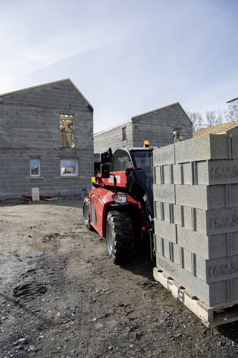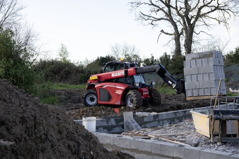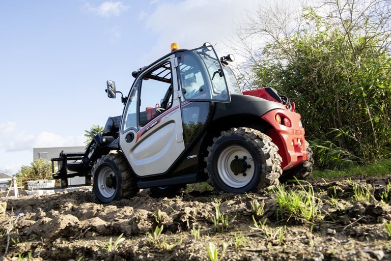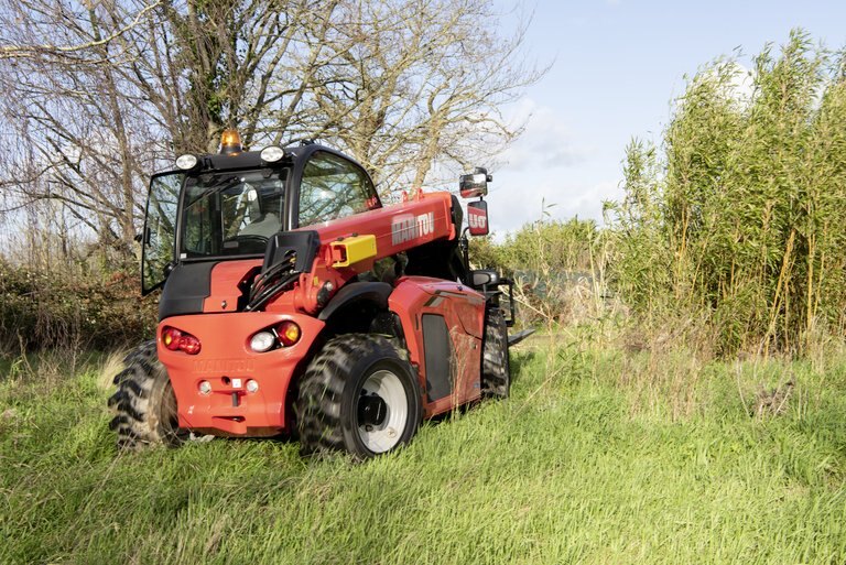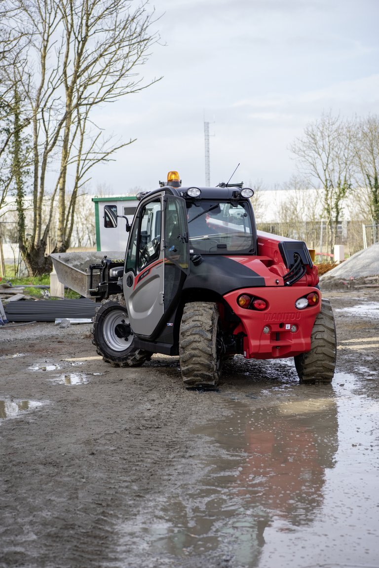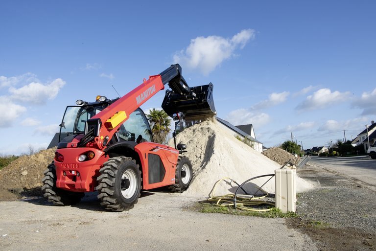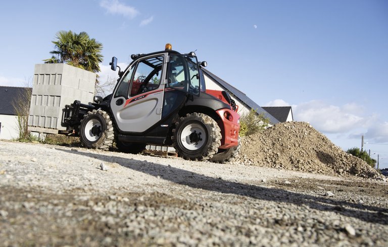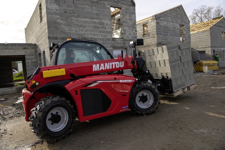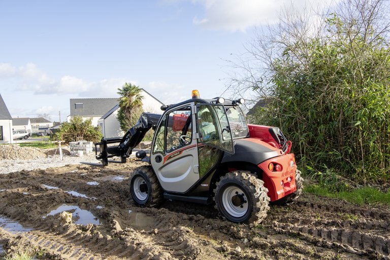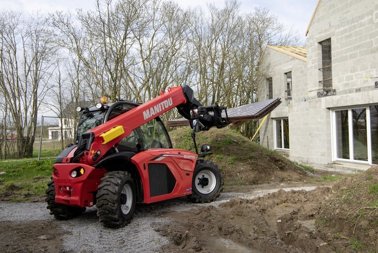 The MT 420 H super-compact telehandler is the smallest in the MT range. Ideal for construction and renovation, its exceptional compactness allows access through narrow entrances as well as confined spaces. Its turning radius and 3 steering modes (4WS/2WS/Crab) provide excellent maneuverability. The MT 420 H has a capacity of 4,400 lbs (2,000 kg) at 14 ft. 3 in. (4.3) m, giving it a high performance load chart. The 56 hp (42 kW) engine and 2-speed hydrostatic transmission has the power to reach 15.5 mph (25 km/h). Another advantage is the simultaneous movements of the lift and extend functions that further increase productivity.