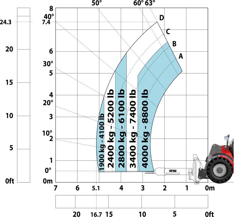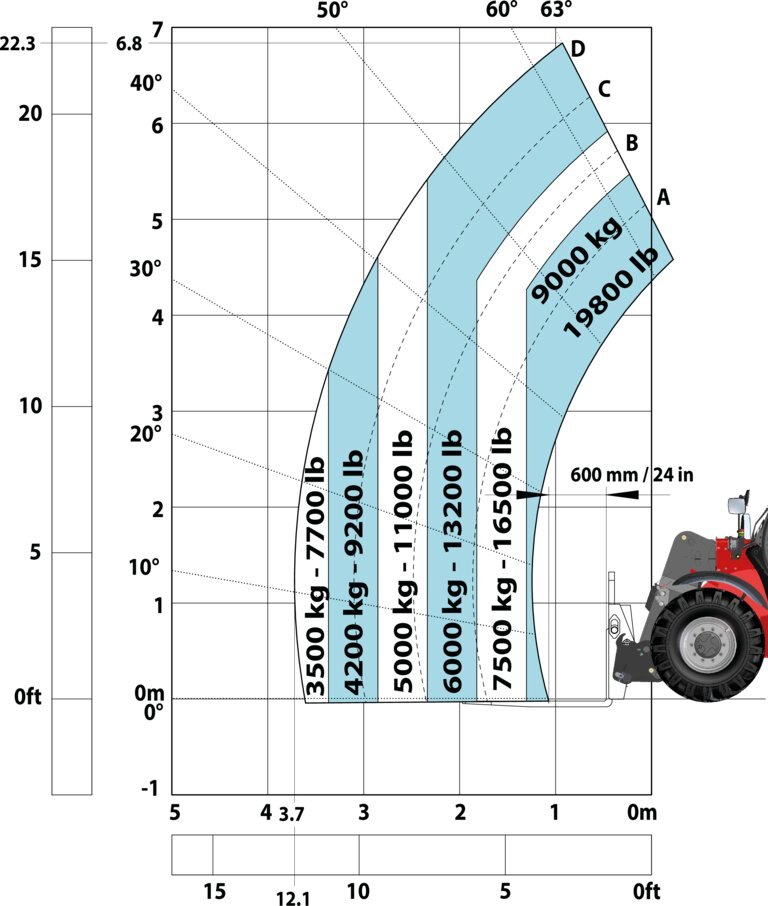 The MHT 790 is a telescopic handler with a capacity of 9 tonnes and a maximum lifting height of 7 metres. It is equipped with a 145 hp engine and a hydrostatic transmission that makes the movements extremely precise. Thanks to the 4 driving and steering wheels, it is easy to manoeuvre on all types of terrain in complete safety. The MHT 790 telescopic handler is used in construction, quarries and industry. It can be equipped with a wide range of attachments: forks, positioner, hook and winch, shovel, man basket and tyre grippers, cylinders and tubes. For maximum comfort, this machine is equipped with a panoramic, ergonomic cab, Easy Step access, JSM joystick and colour touch-screen display. |