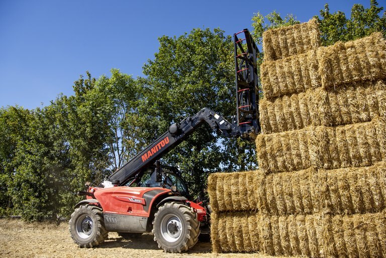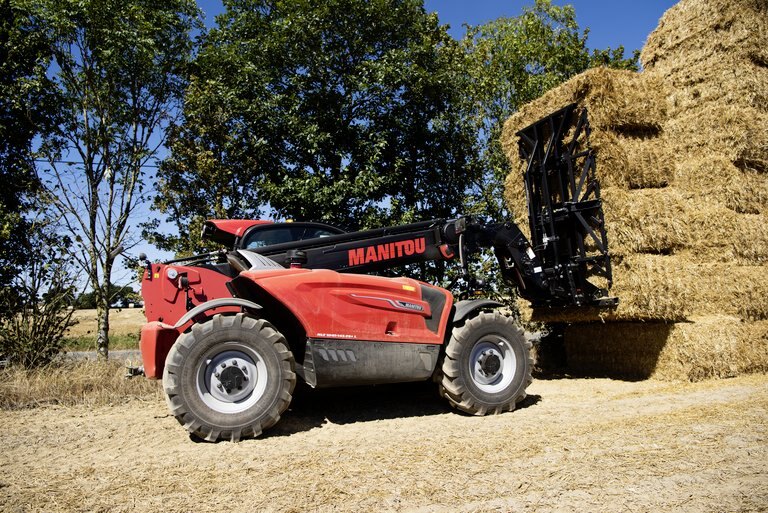 "If you are looking for a more comfortable, efficient and profitable machine for working at great heights, the MLT 1041-145 PS+ L NewAg XL is for you! Dedicated to intensive agricultural handling, it has a lifting height of 9.65 m and a lifting capacity of 4.1 t.The Comfort XL: this machine offers a new soundproof cab (69 dBA - the quietest cab on the market) with easy step access, optimal visibility, JSM® (Joystick Switch and Move) on a floating armrest, DSB (Double Switch Buttons) and an automatic parking brake.For even more comfort, a new adaptive air suspension seat with heating and electric lumbar adjustment is also available as an option.The Performance XL: This machine delivers exceptional results even on the most demanding applications thanks to its 141 hp Yanmar engine (602 Nm max. torque) and M-Shift transmission. Its tilt control, limited slip differential on front and rear axles, 43 cm ground clearance and automatic radiator cleaning system are perfectly adapted to intensive agricultural use. A wide choice of tires is also available to optimize your efficiency in all working environments. New hydraulic functions and a 200 l/min variable flow pump ensure a very high level of productivity, and for even more performance, the HighView camera (+10% loading productivity), Comfort Steering System (+12% loading productivity) and trailer braking (hydraulic, pneumatic) are among the options available.XL Profitability: this machine has been specifically designed to reduce its total cost of ownership (TCO), notably by optimizing fuel consumption and machine maintenance (e.g. centralized lubrication points, etc.). Manitou also offers the Easy Manager connected solution to manage, optimize and secure the machine. All these elements allow you to maximize the residual value of your telescopic forklift.For even more profitability, the Ecostop intelligent engine shutdown and the automatic lubrication system are available as options to reduce your total cost of ownership (TCO)." |